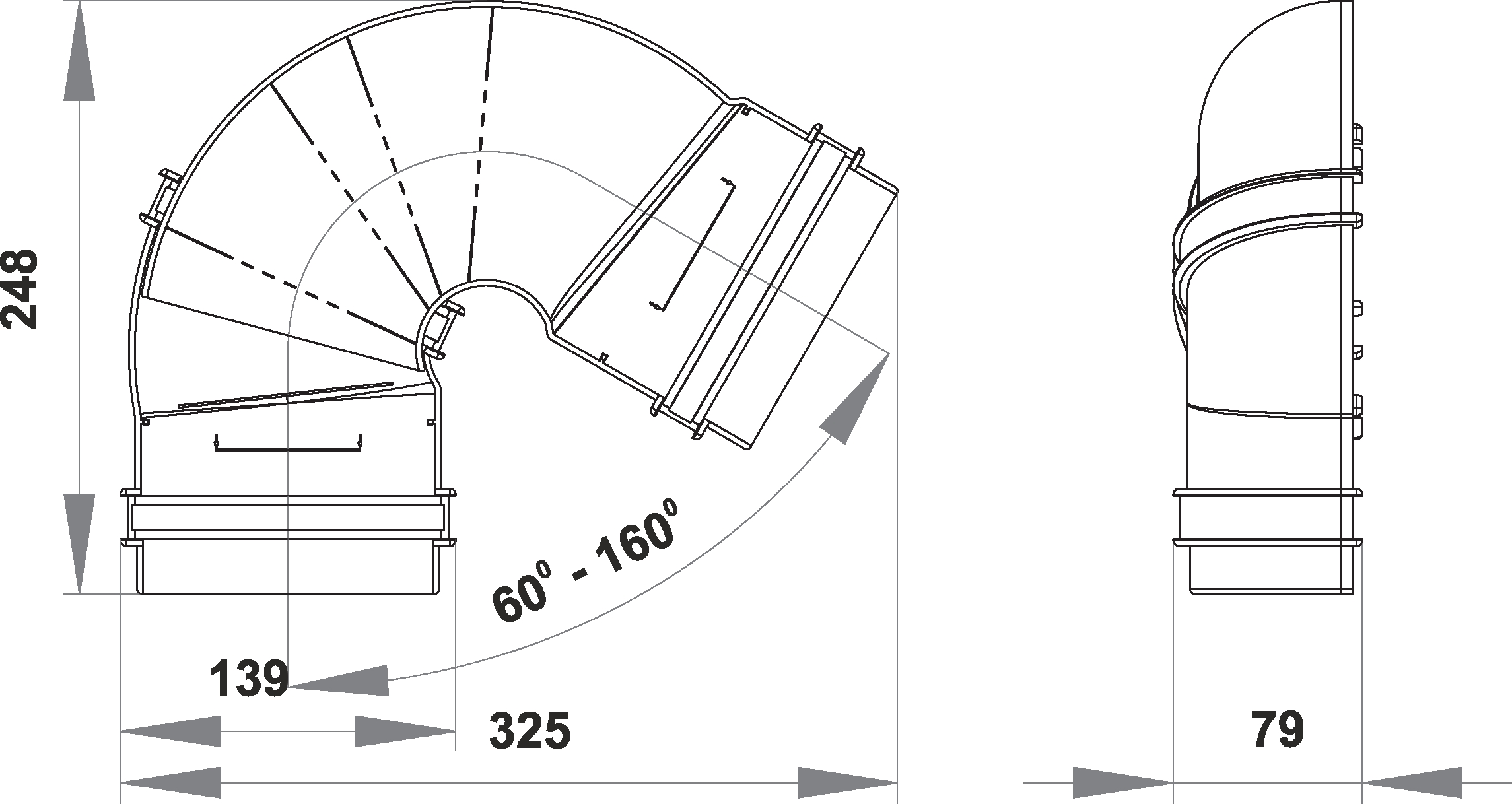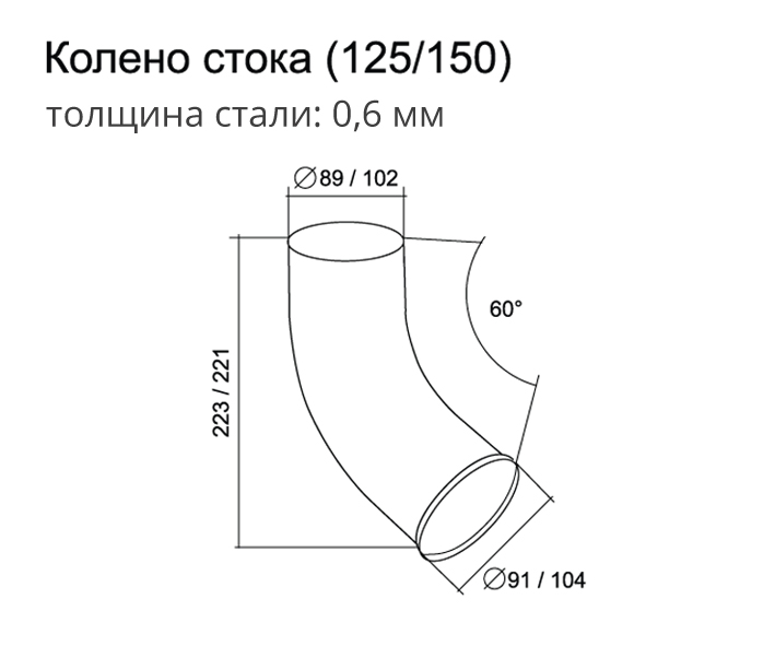 Чертеж колено сливное ПВХ 120/90