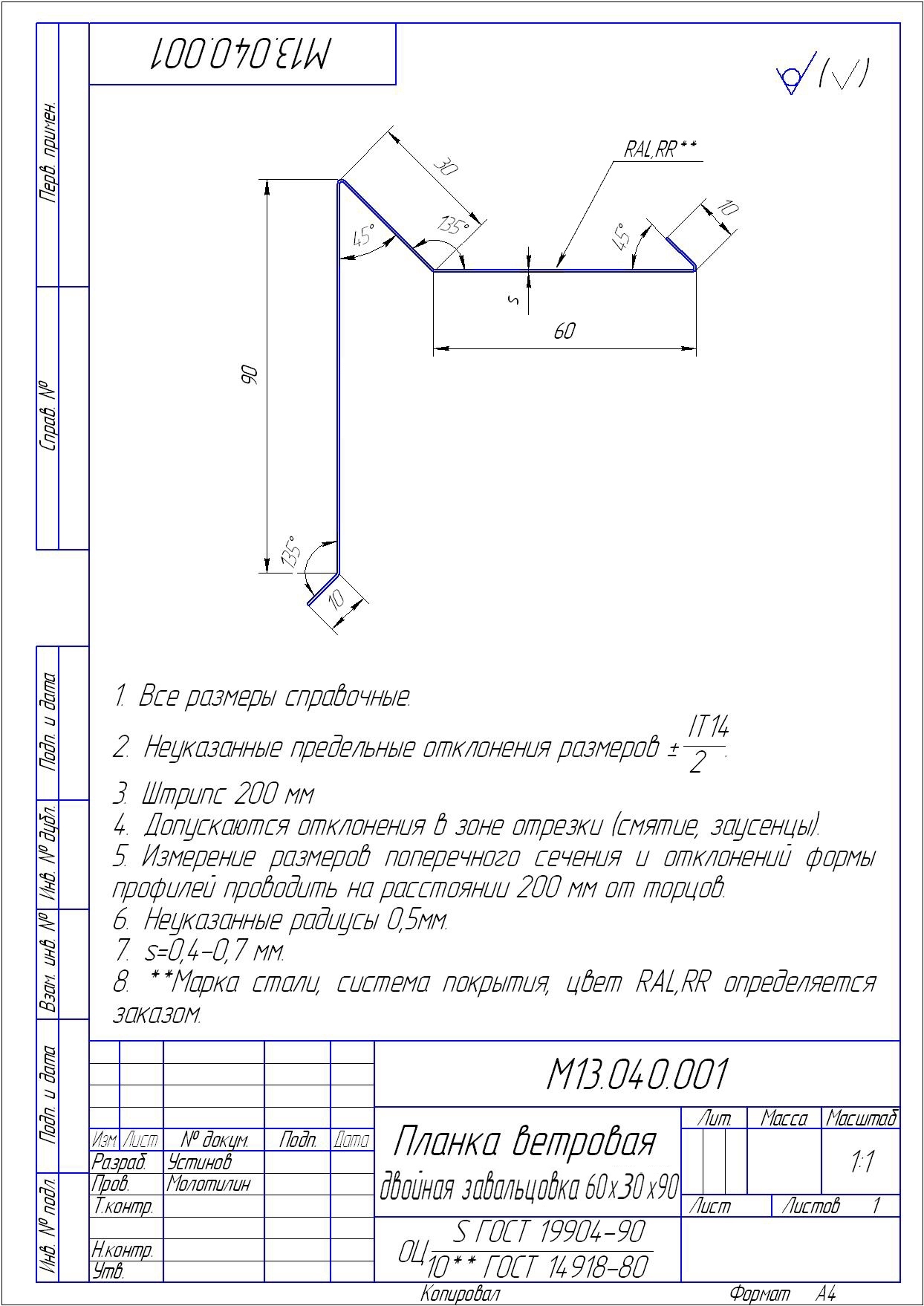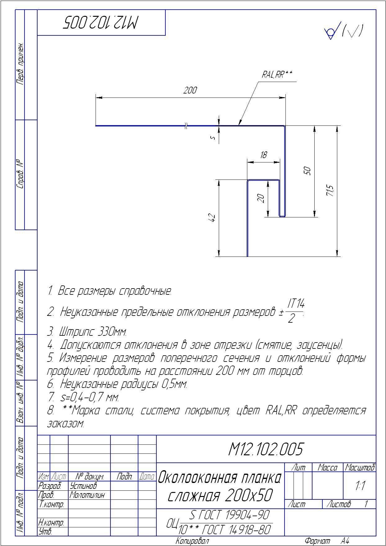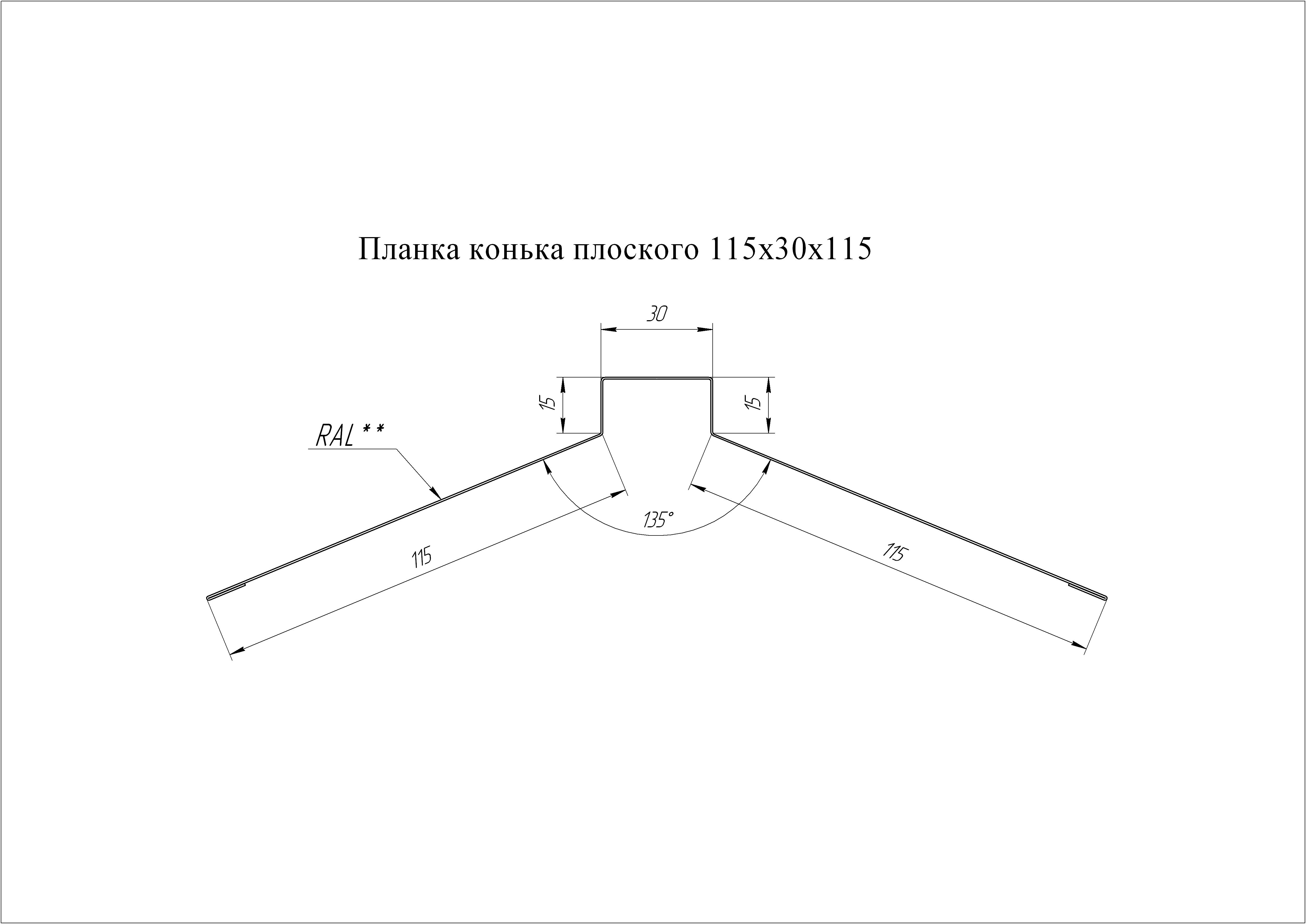 Чертеж планки конька плоского 220х50х220 мм
