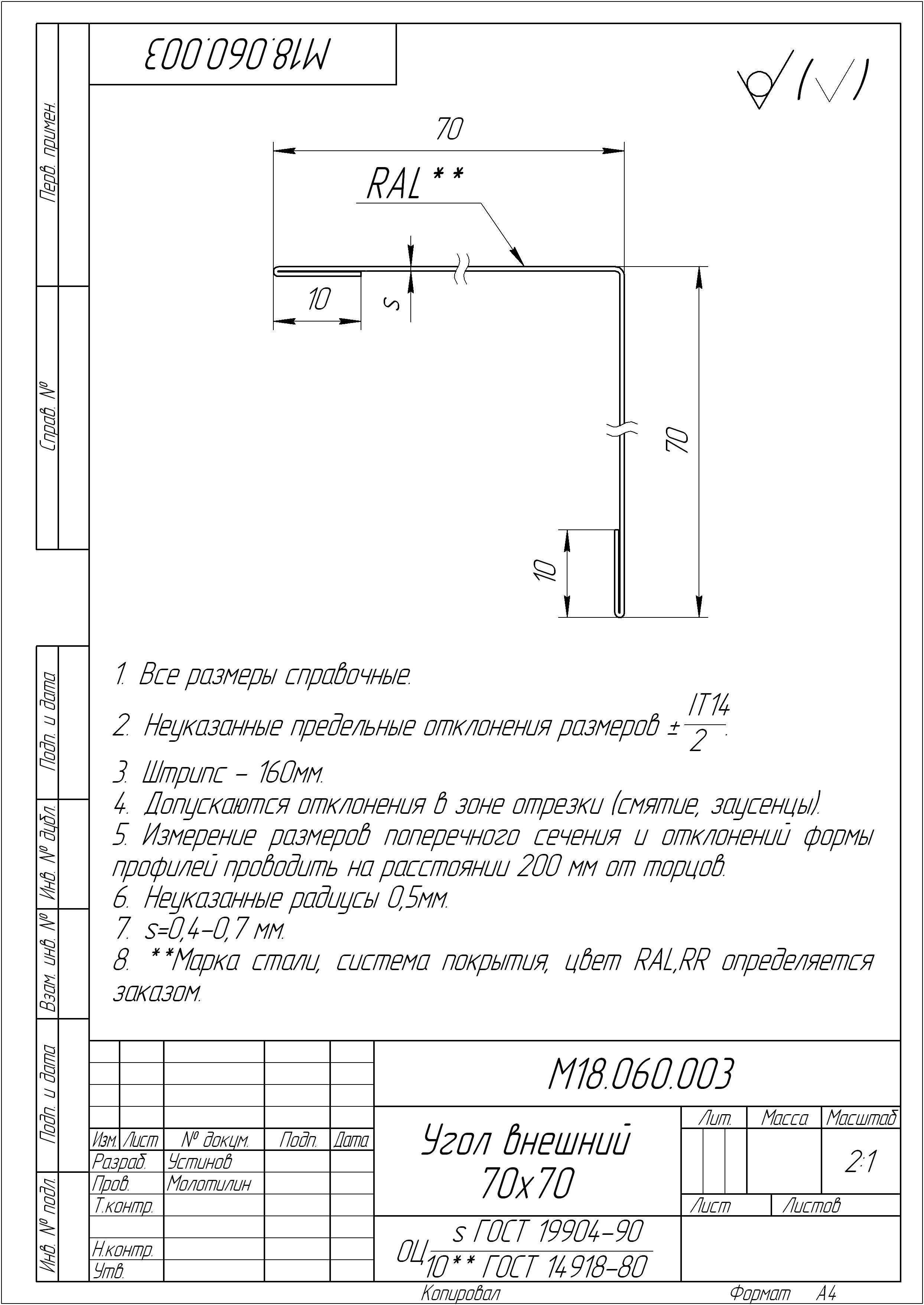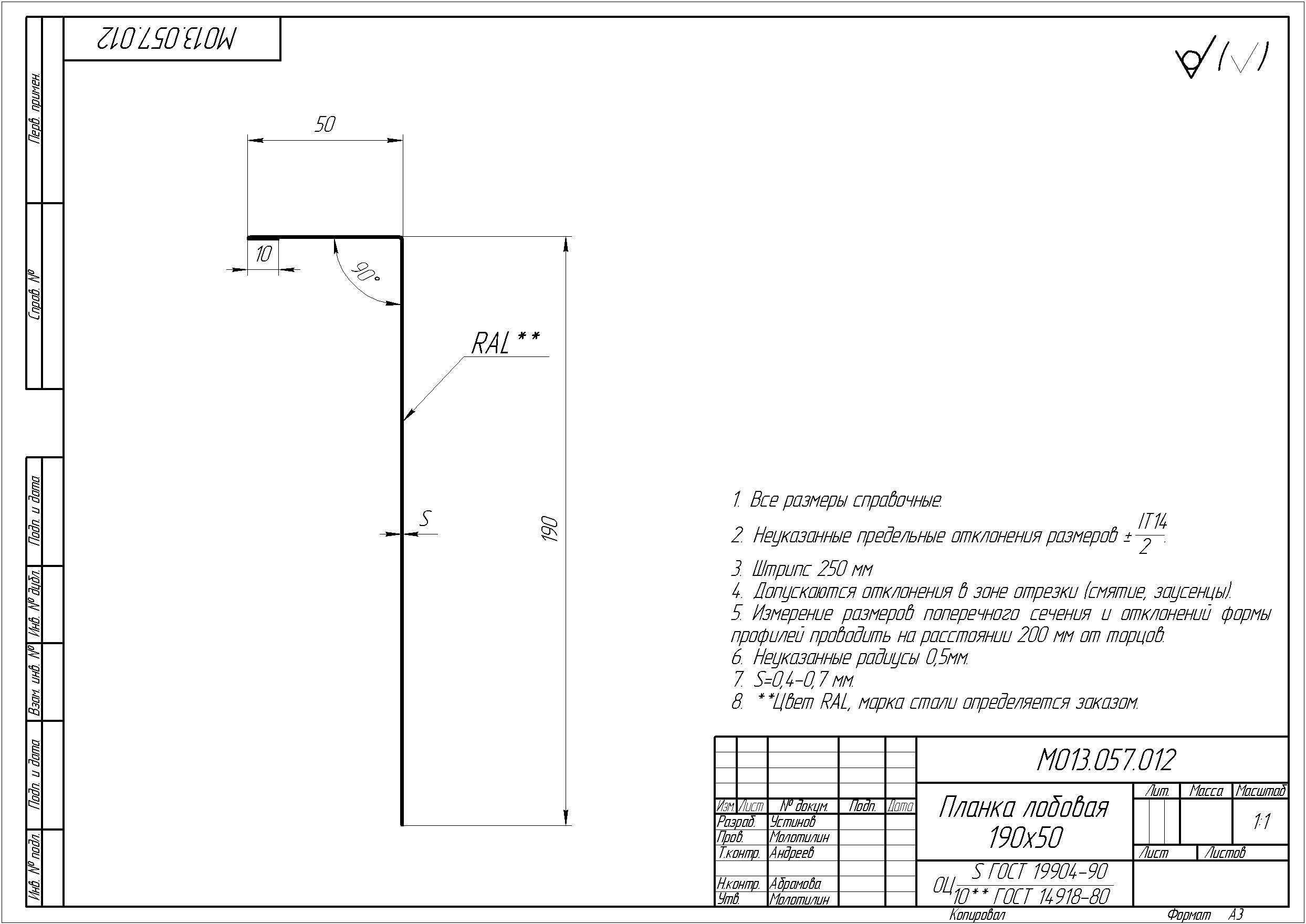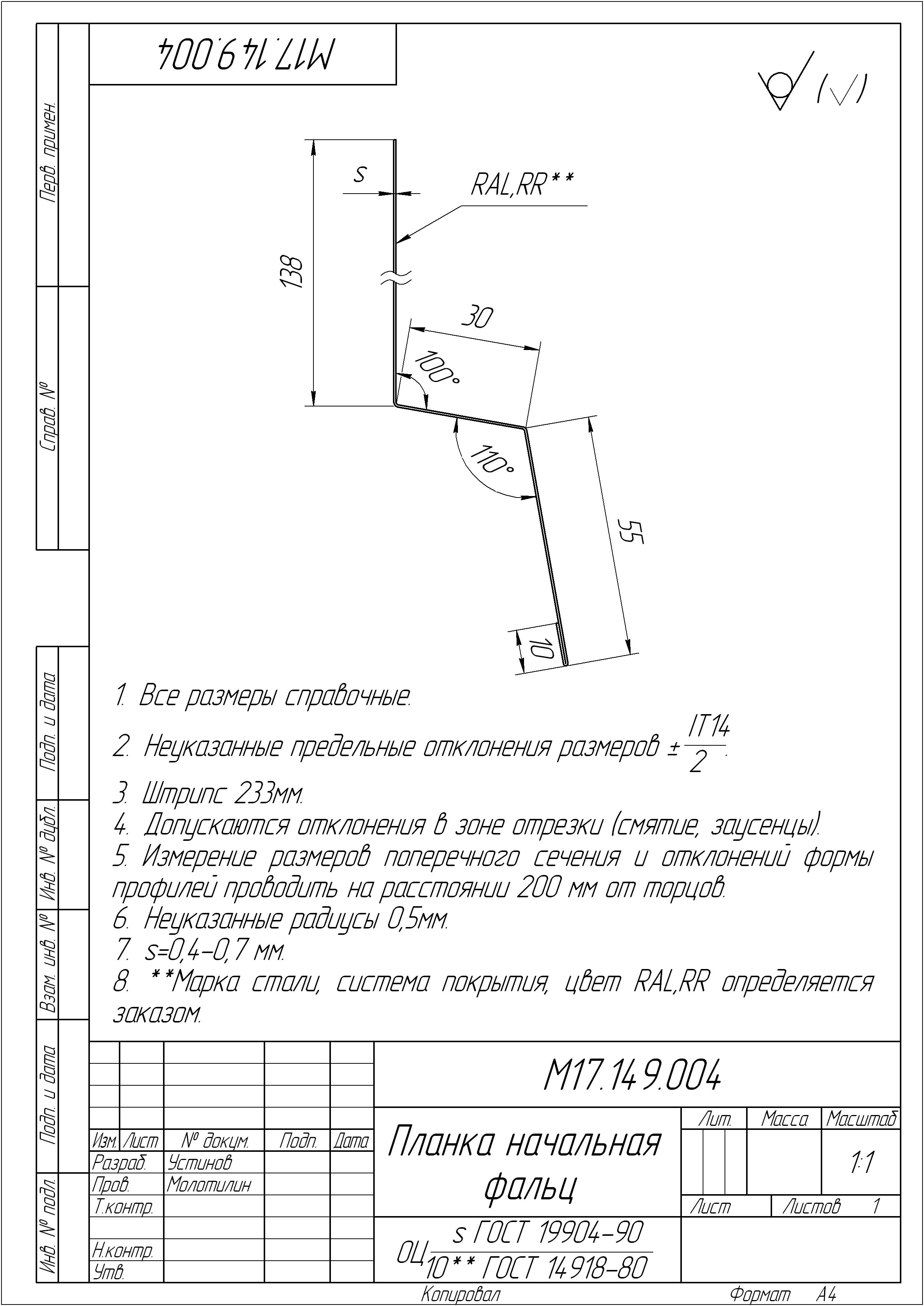 Чертеж планки конька плоского 220х50х220 мм