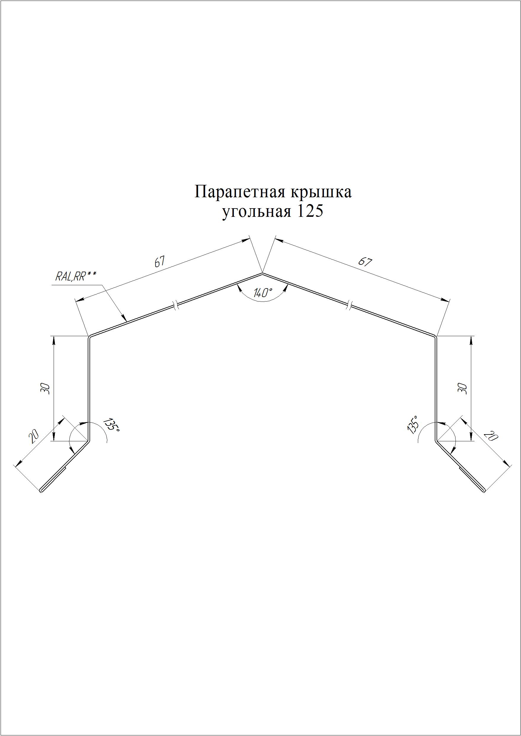 Парапетная крышка угольная 125мм