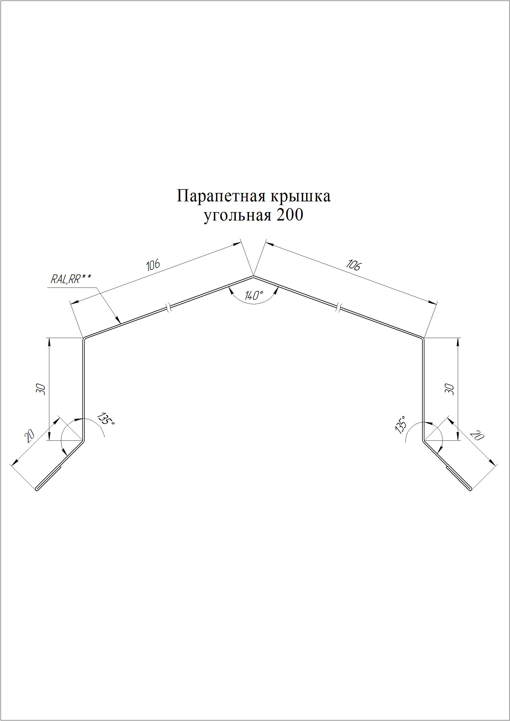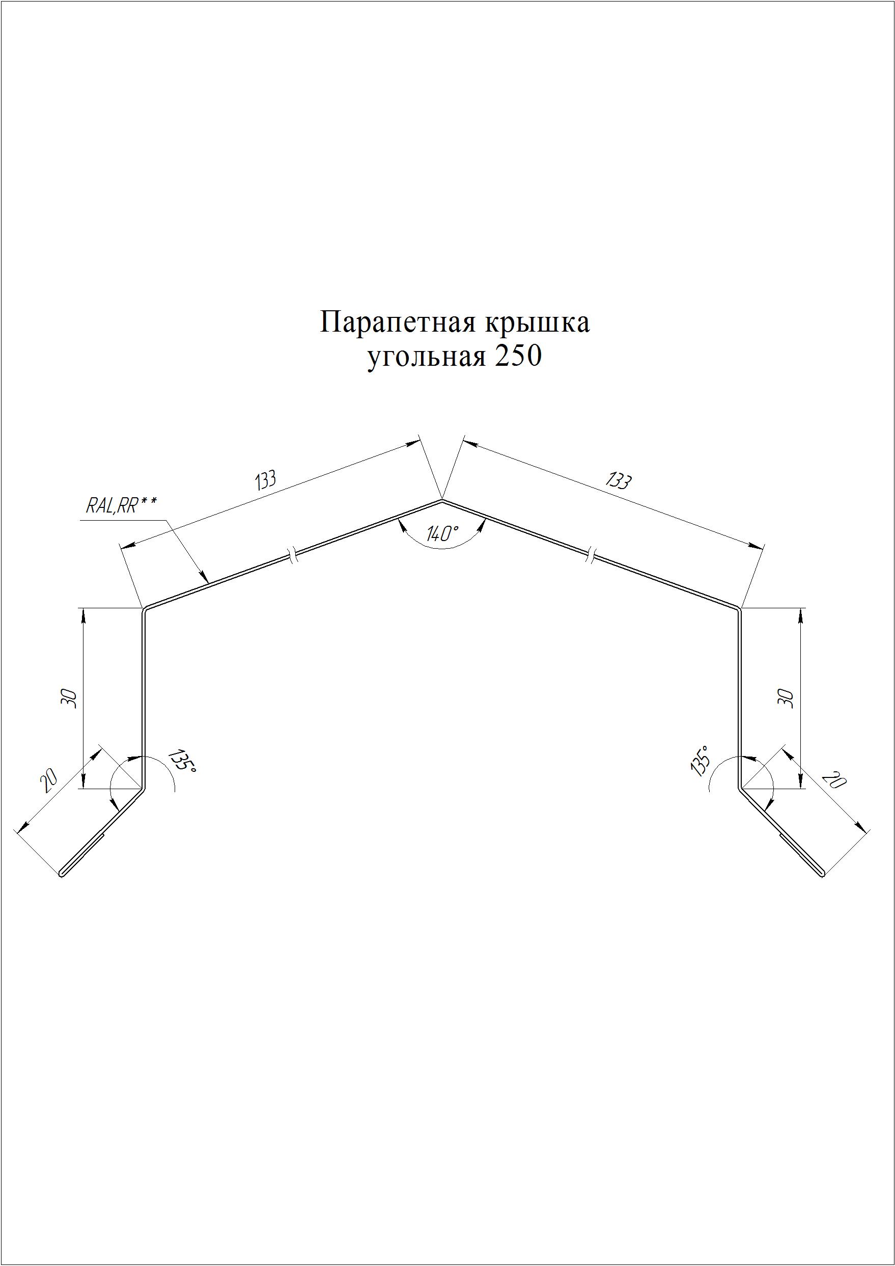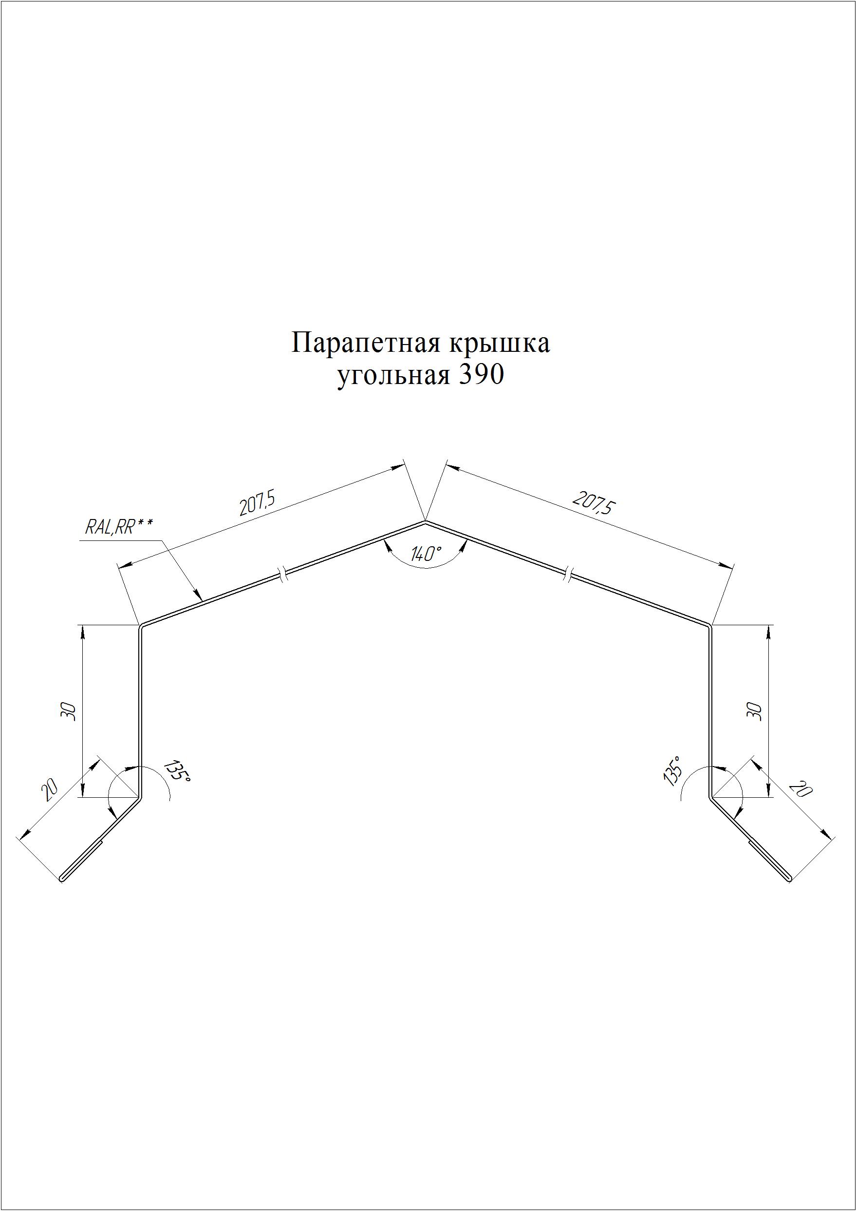 Парапетная крышка угольная 390 мм