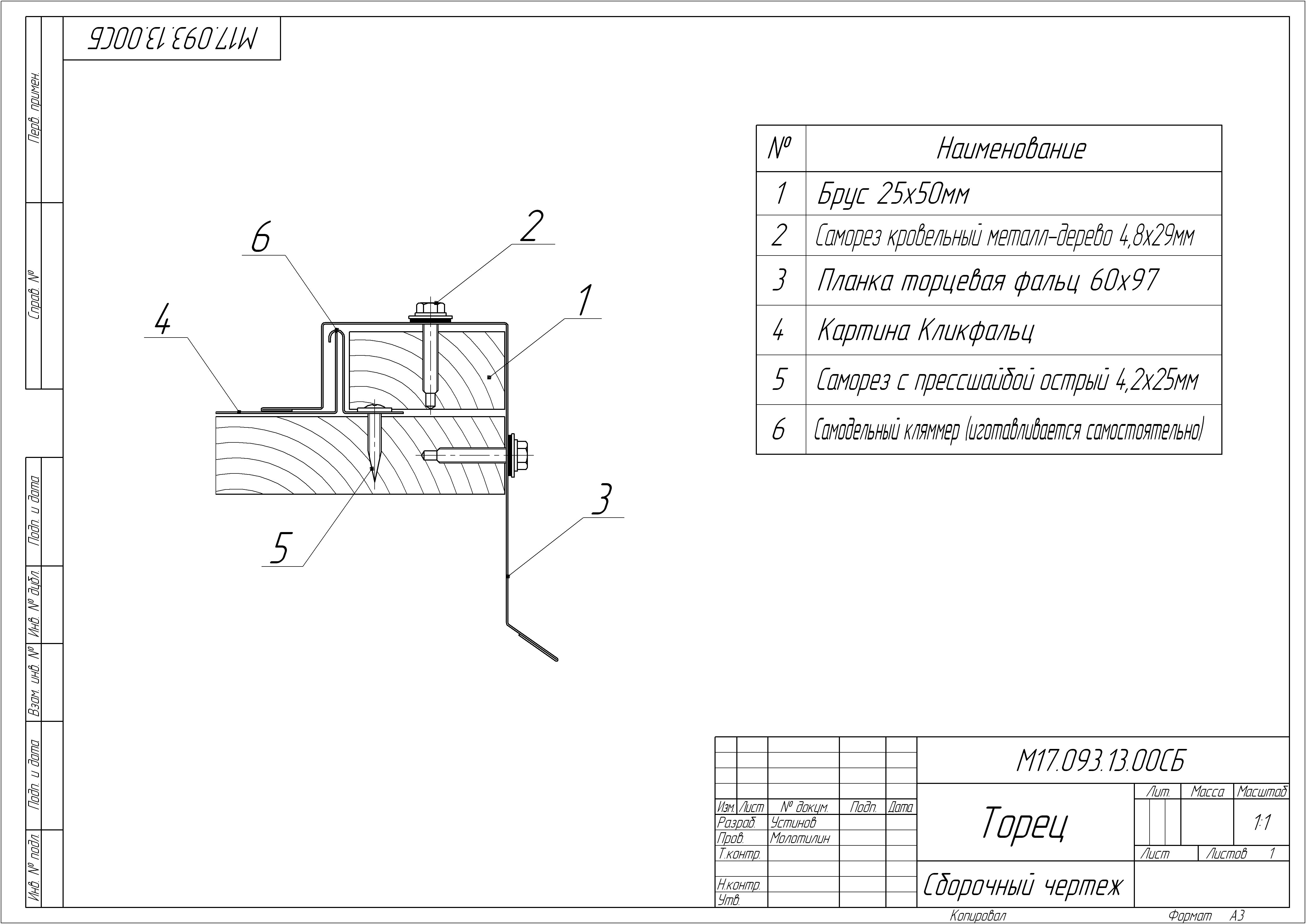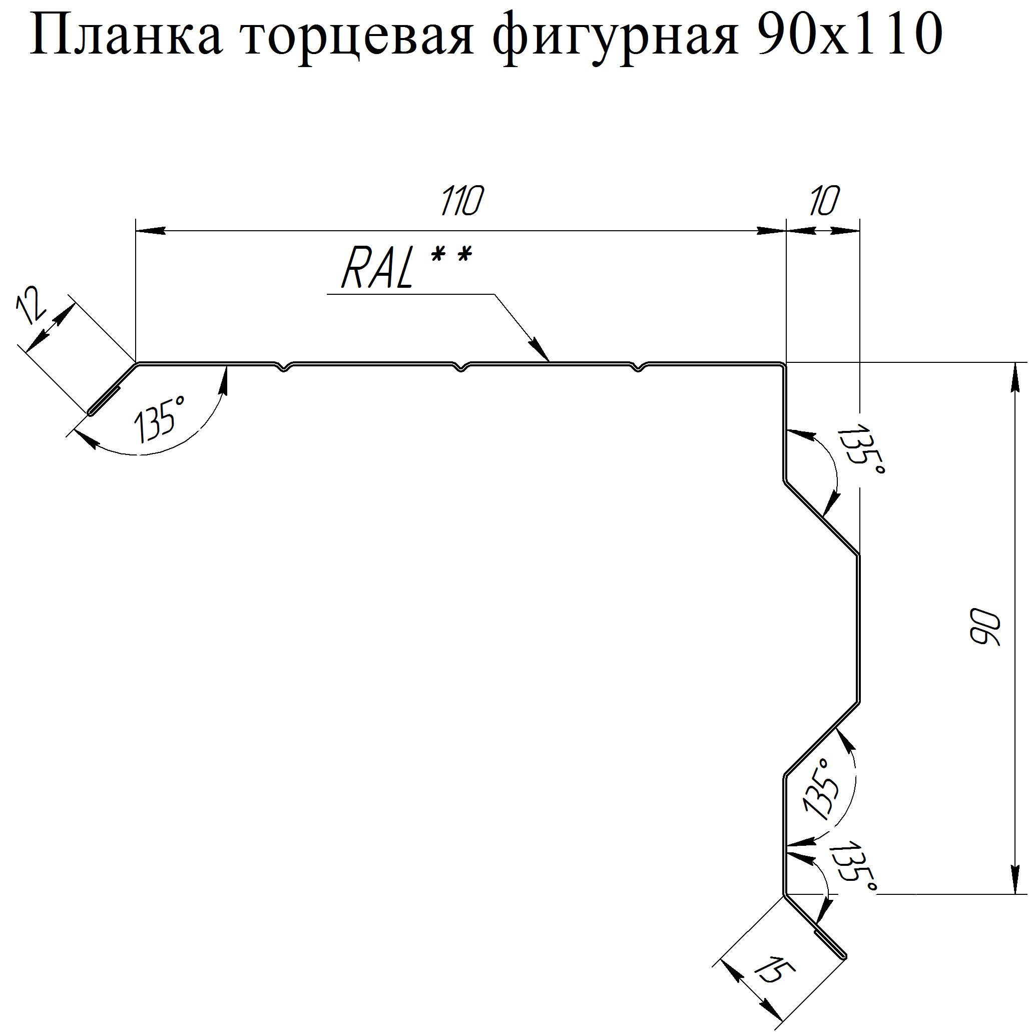 Планка торцевая кровельная фальц 65х97