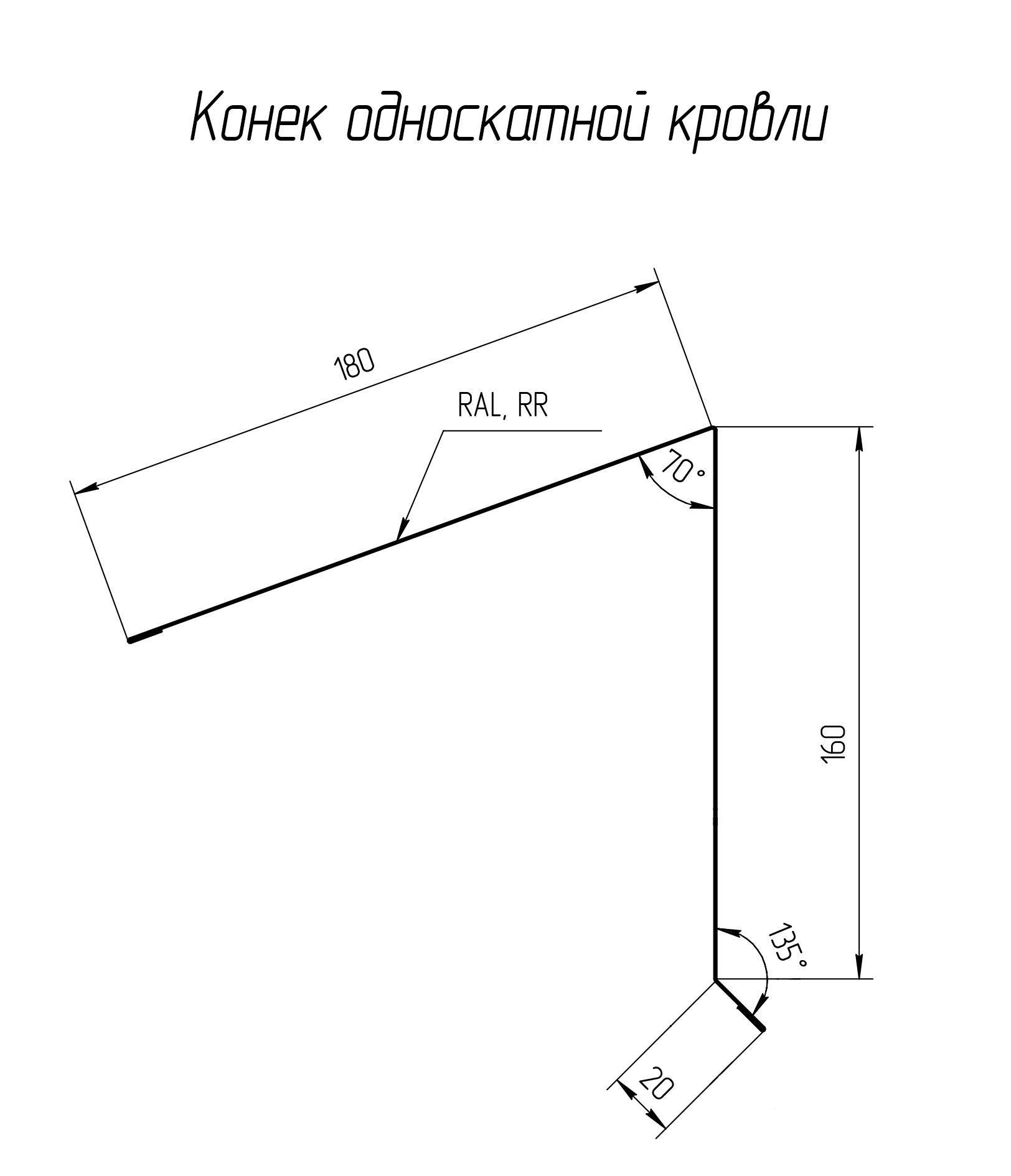 Конек односкатной кровли 180*160