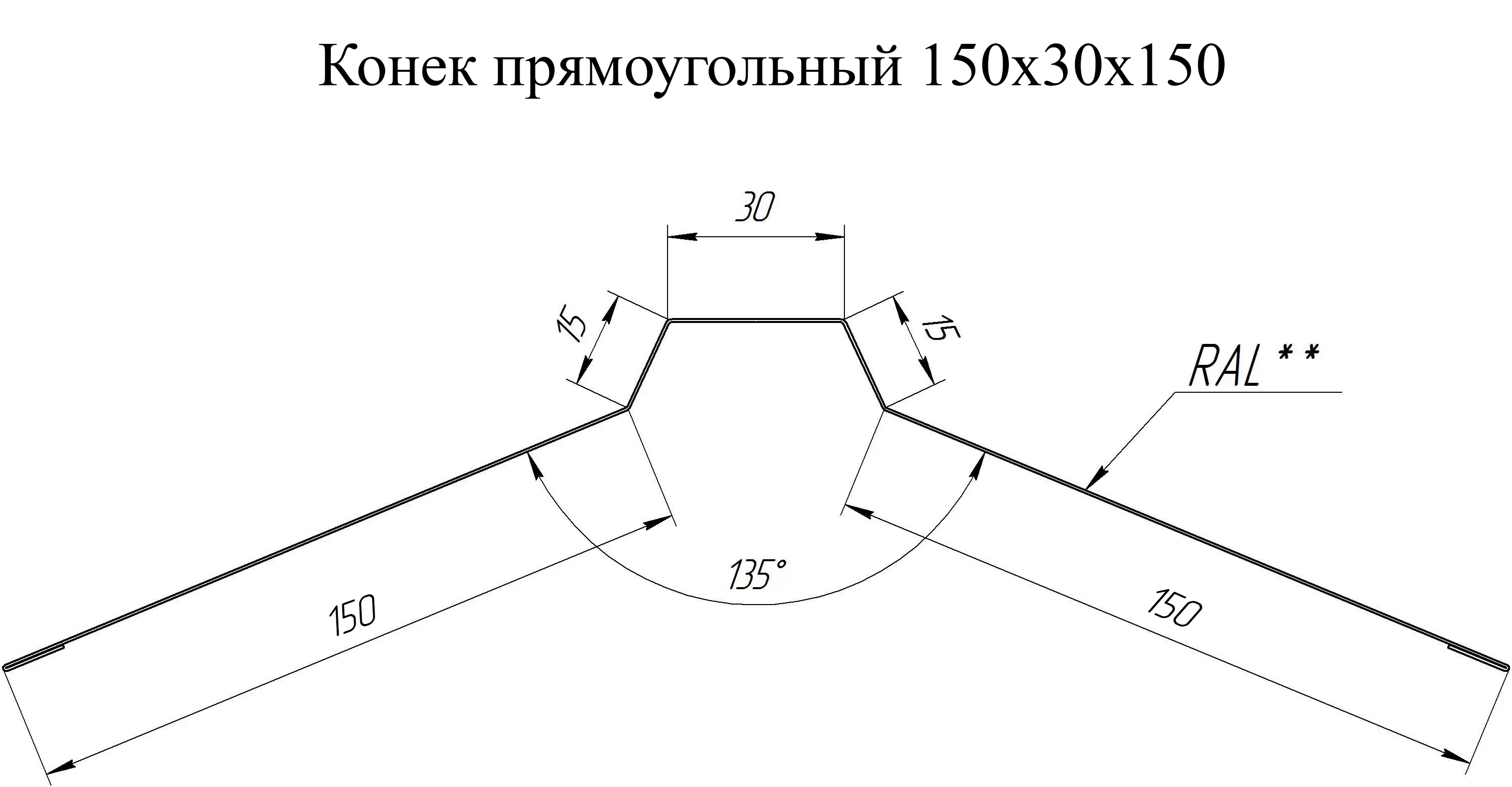 Конек прямоугольный 150х30х150