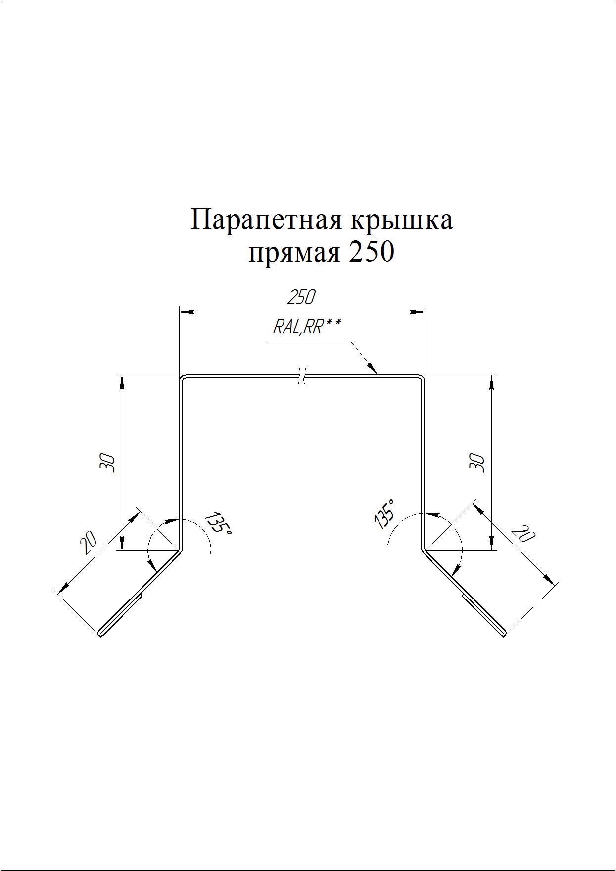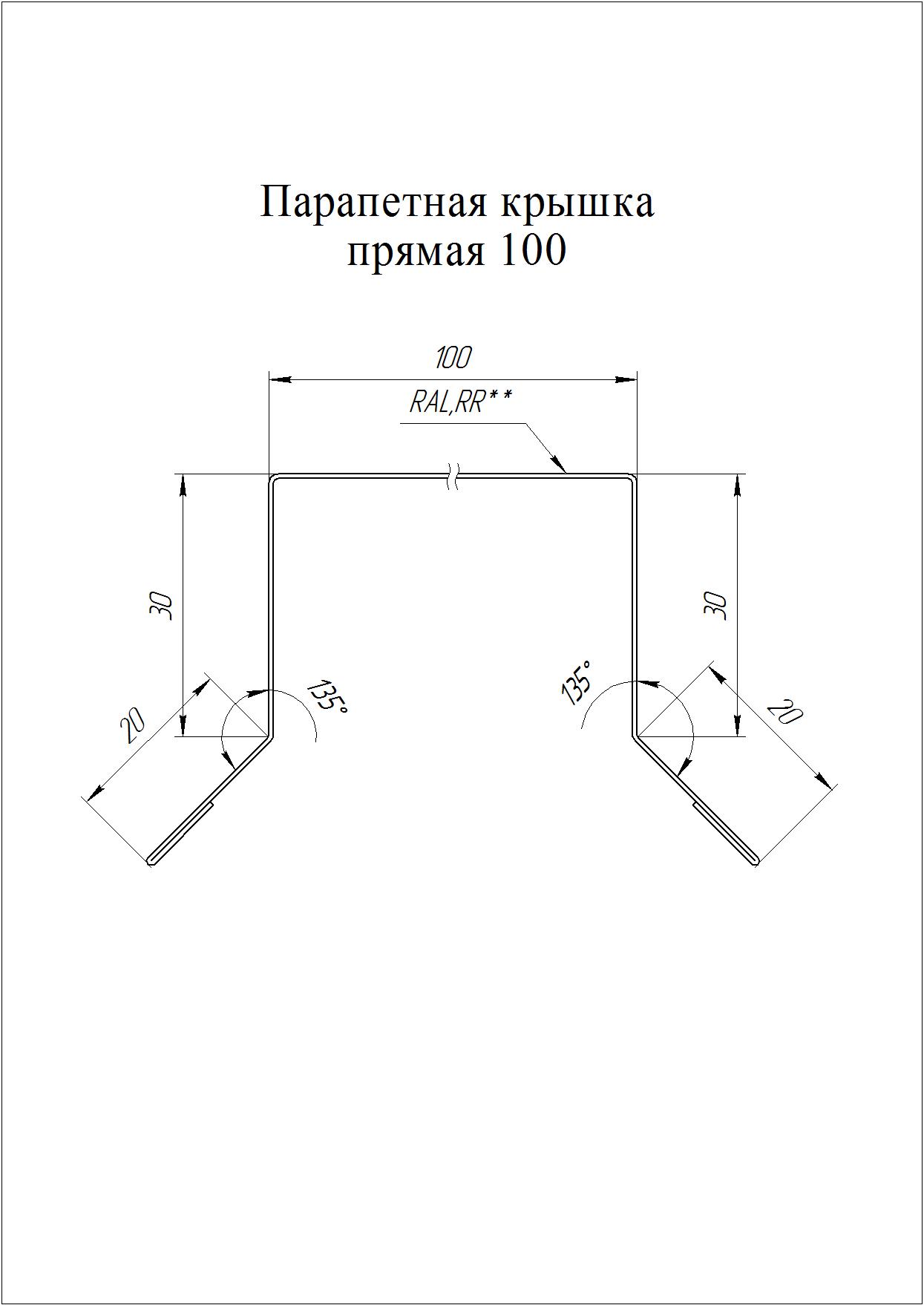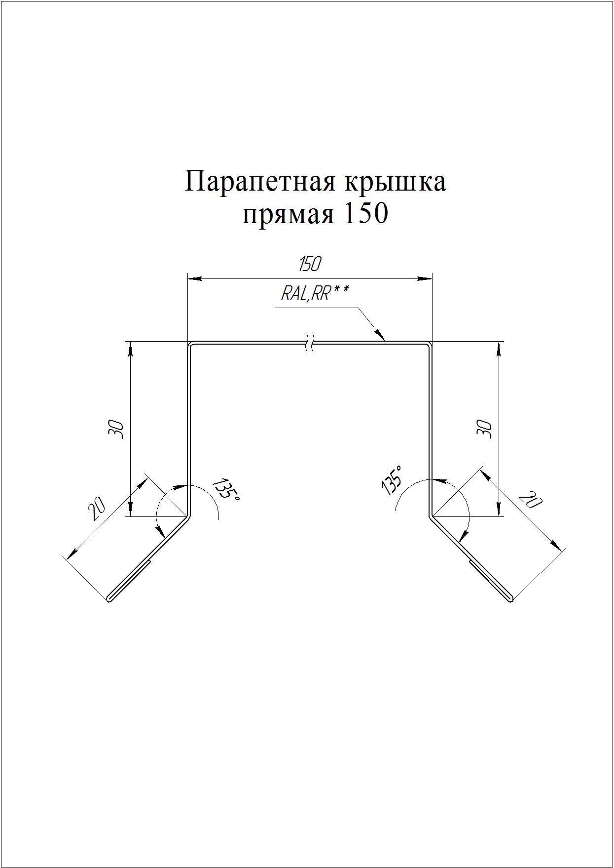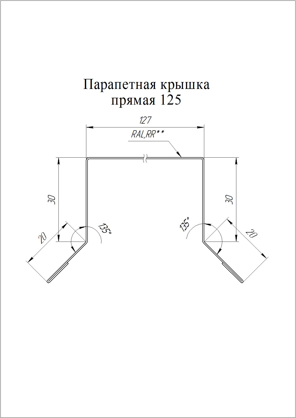 Парапетная крышка прямая 125, мм