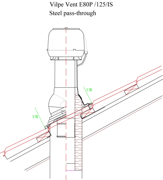 Чертеж проходного элемента Krovent Base-VT Prof 21 125/150