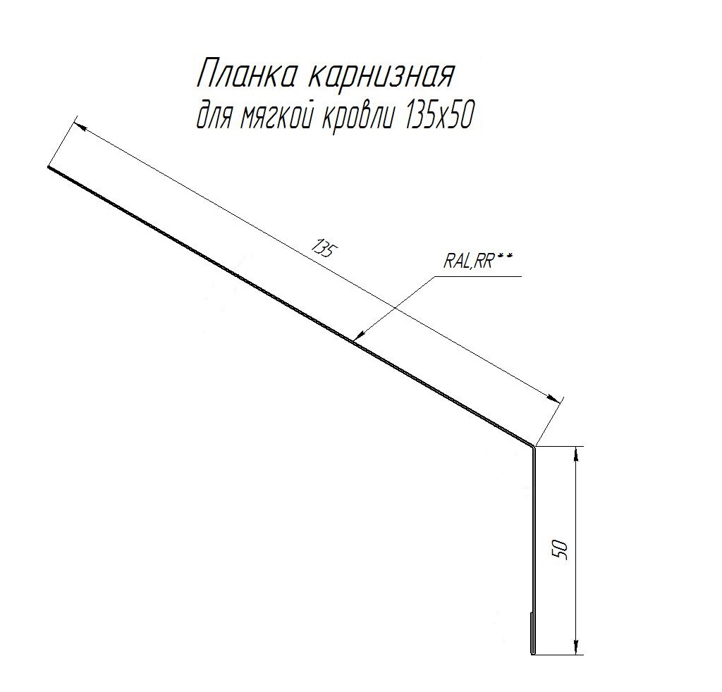 Планка карнизная для мягкой кровли 135х50 мм