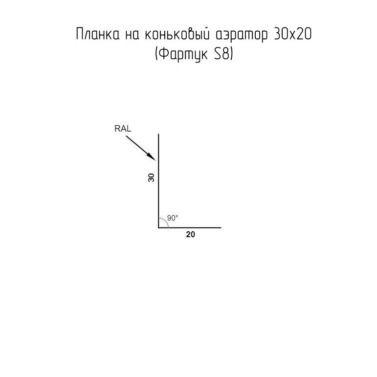 Планка на коньковый аэратор 30х20 (Фартук S8)