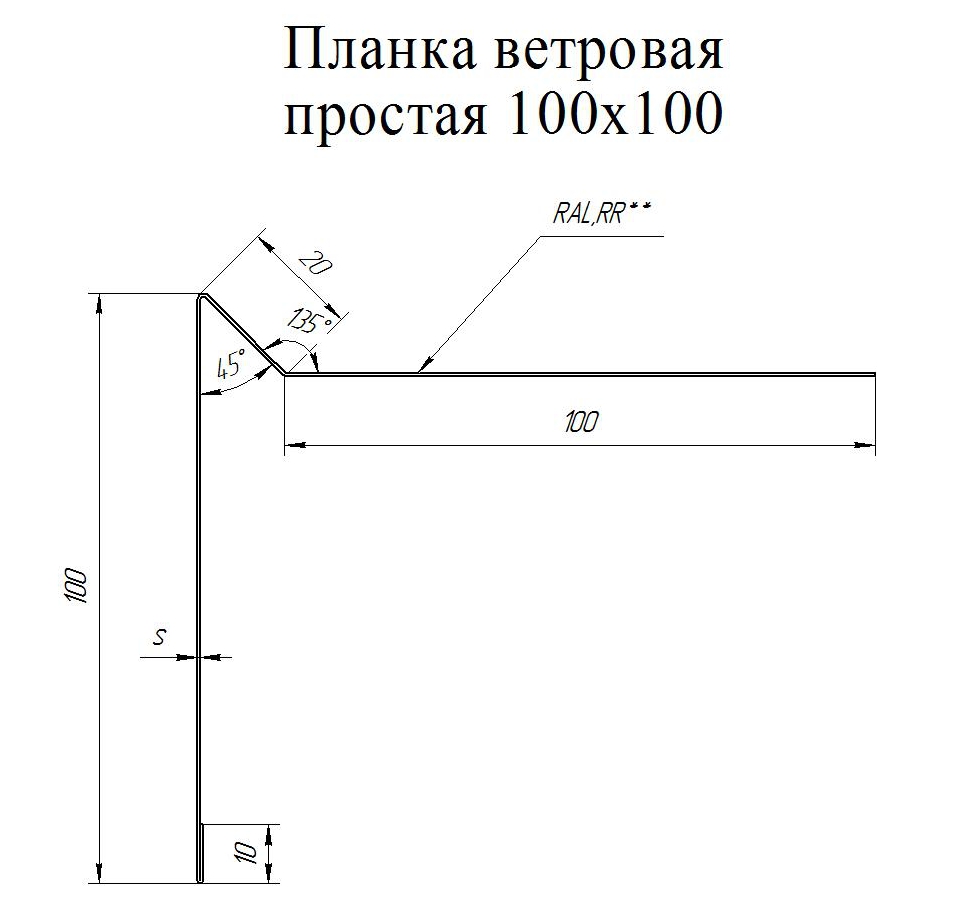 Планка ветровая простая 100*20*100