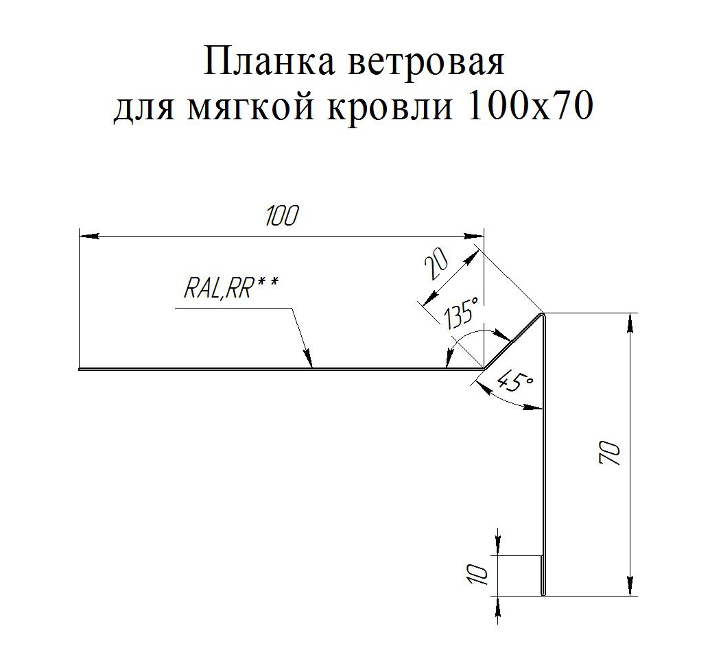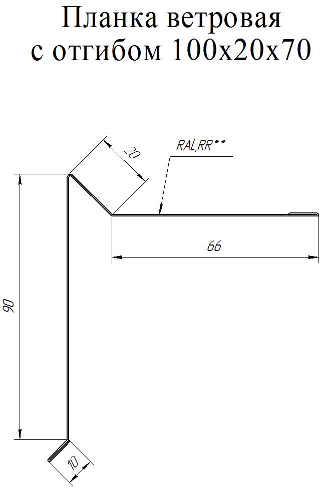 Планка ветровая простая 100*20*70