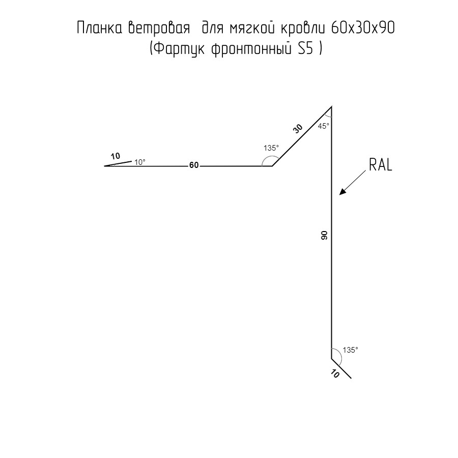 Планка ветровая для мягкой кровли 60х30х90 (Фартук фронтонный S5)