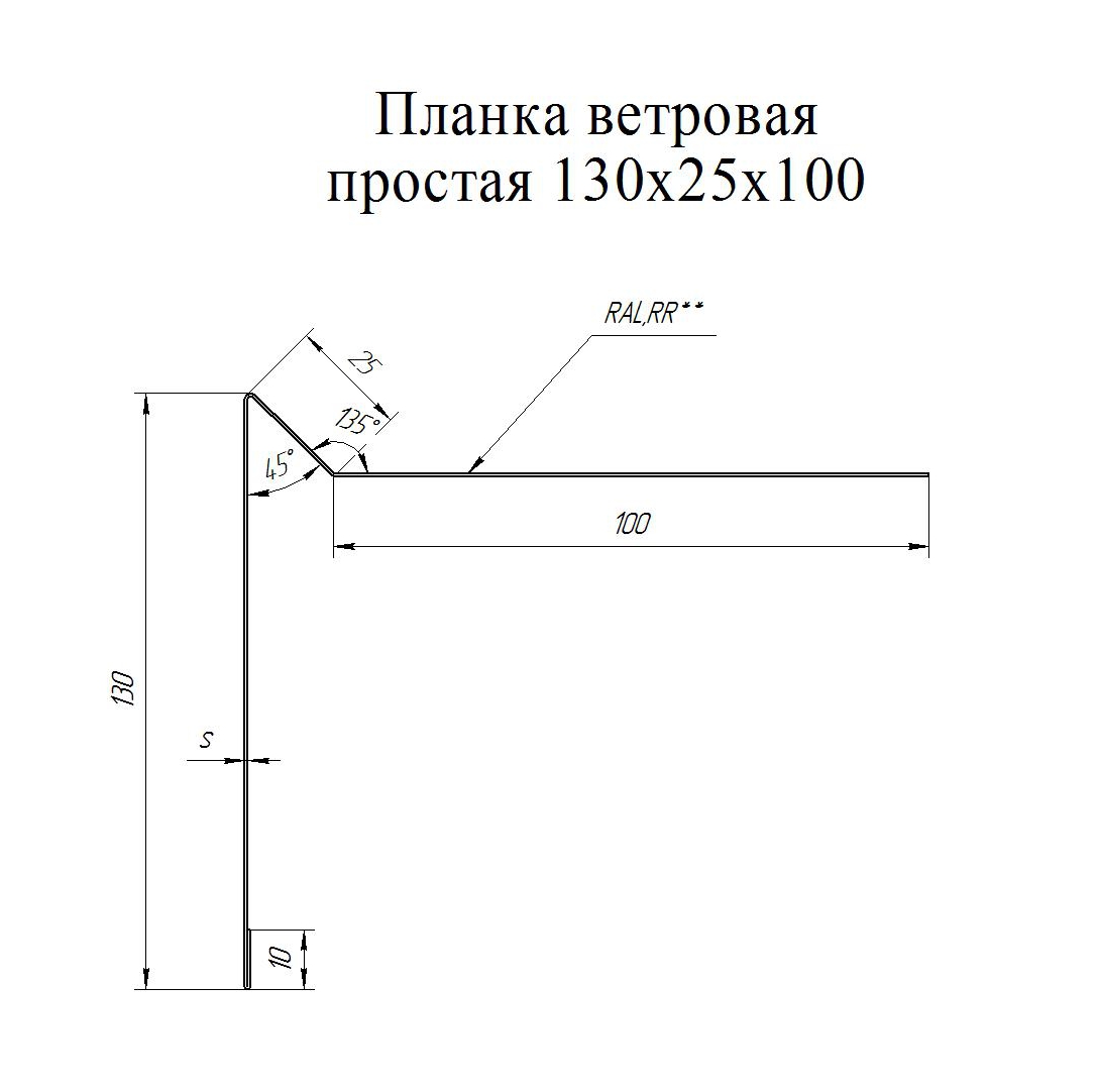Планка ветровая простая 130*25*100