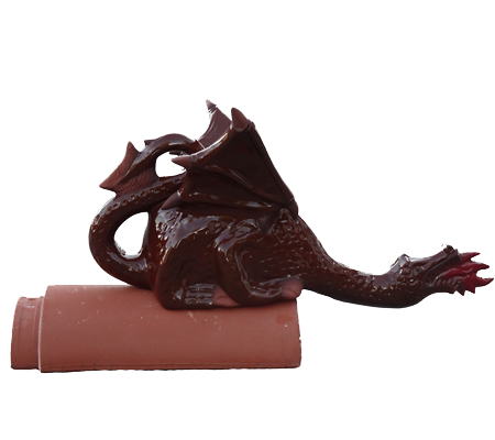 Декоративный элемент на кровлю Дракон огнедышащий, красный, глазурь, Purr-Keramic