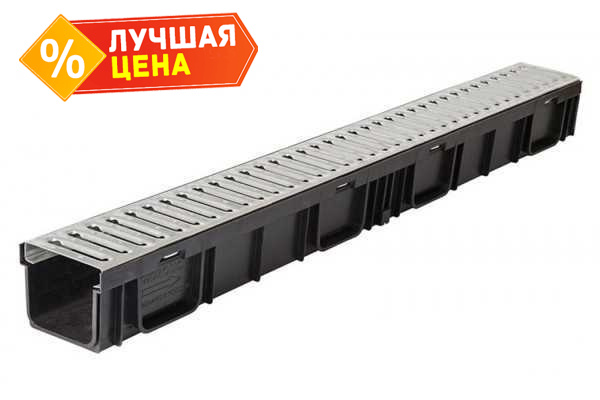 Комплект Gidrolica Light: лоток водоотводный ЛВ-10.11,5.5,5-пластиковый с решеткой РВ - 10.10,8. 100 стальной оцинк., кл. А15 (08096)