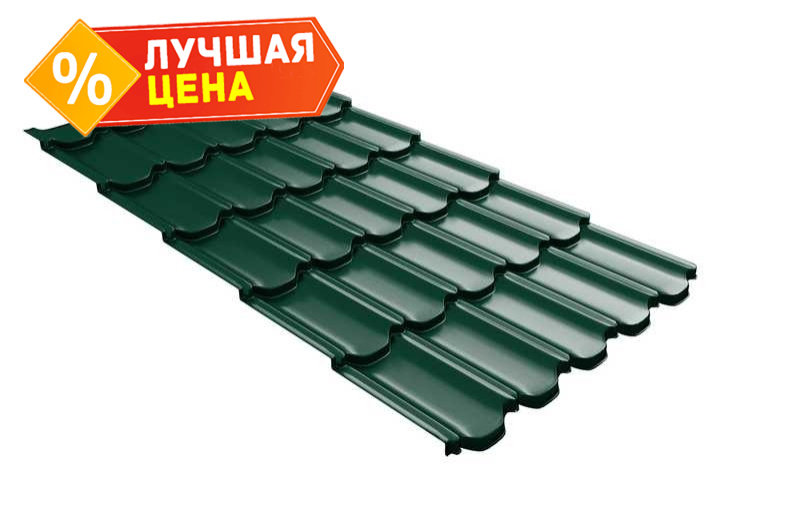 Металлочерепица Grand Line Kvinta plus (Квинта Плюс) 0,5 GreenCoat Pural Matt BT RAL 6005 Зеленый мох | c 3D резом