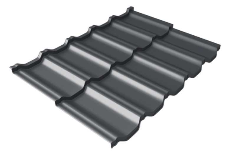 Металлочерепица Grand Line Kvinta Uno (Квинта Уно) 0,45 Drap ST RAL 7024 Мокрый асфальт