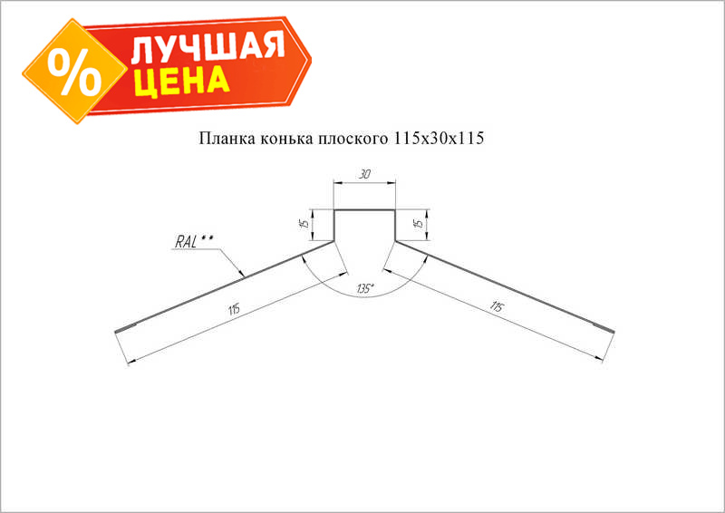 Планка конька плоского Grand Line 115х30х115 0,45 Полиэстер NL 805 серо-коричневый гефест