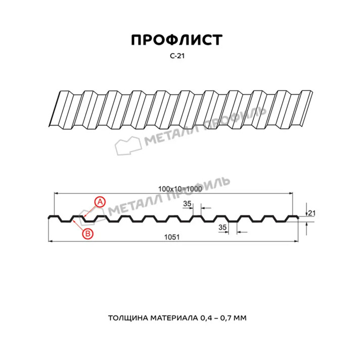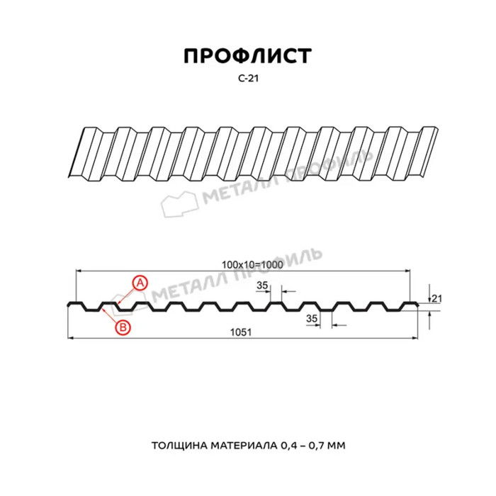 Профлист С21 для кровли Металл профиль