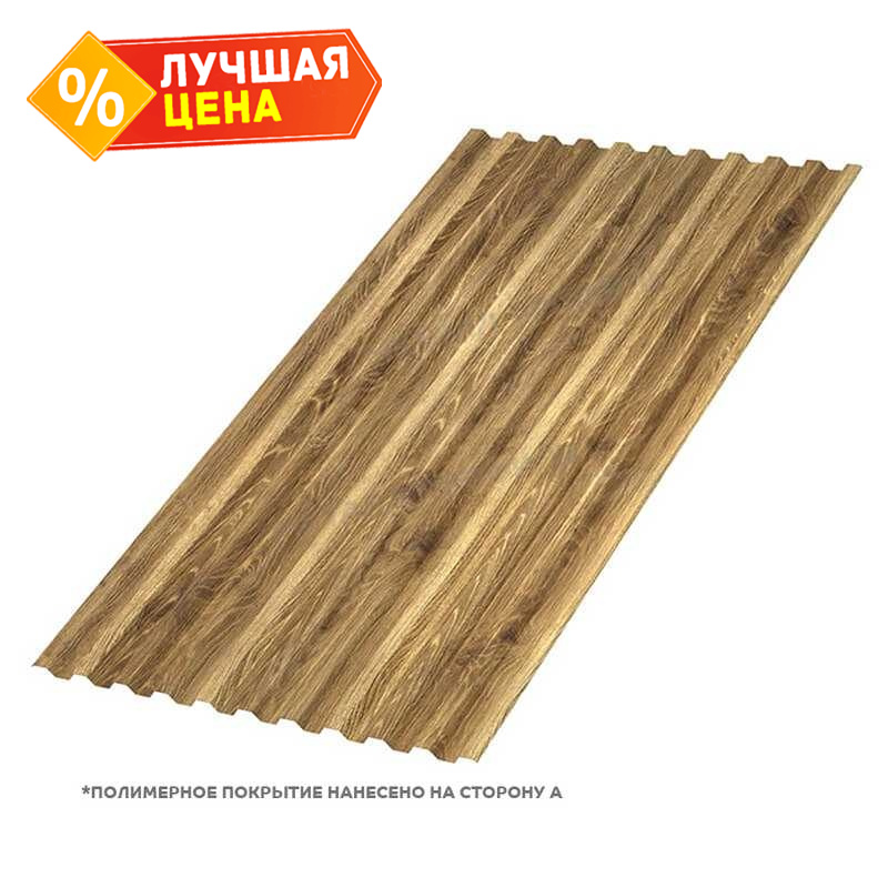 Цвет Золотой Дуб придает профлисту особую привлекательность и позволяет использовать его в различных дизайнерских решениях. Он идеально подходит для создания крыш, фасадов зданий, заборов и других конструкций.