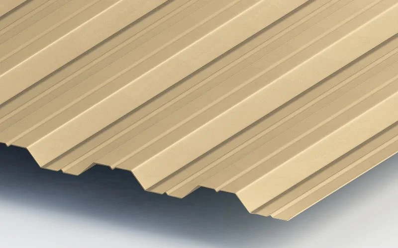 Профнастил ЮджинСтрой НС35 с покрытием из полиэстера толщиной 0,7 мм в цвете Ral 1014 слоновая кость - отличный выбор для кровли и обшивки зданий. Этот материал обладает высокой прочностью, устойчивостью к коррозии и влаге, а также долговечностью.