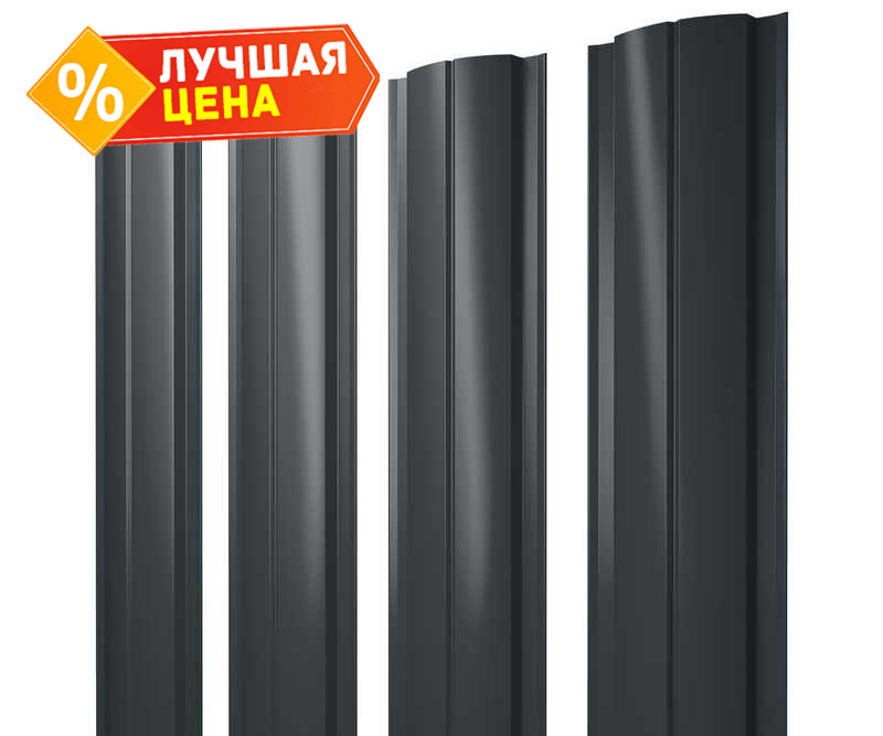 Штакетник Полукруглый Slim Grand Line 0,5 Velur RAL7016 Антрацитово-Серый