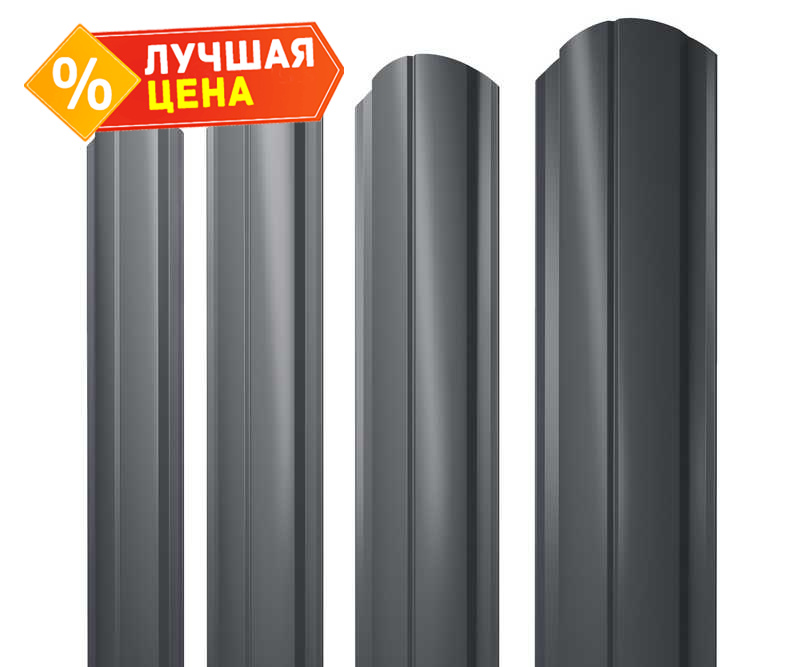 Штакетник Полукруглый Slim фигурный Grand Line 0,5 Quarzit lite RAL7024 Мокрый Асфальт