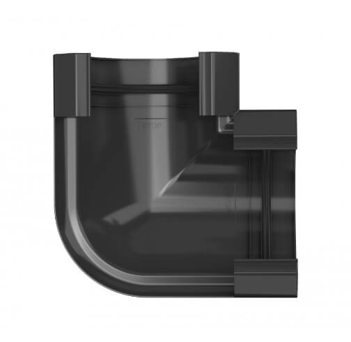 Угол желоба ТЕХНОНИКОЛЬ ПВХ МАКСИ антрацит – связующий элемент в водостоке. Используется, чтобы соединить желоба и корректировать направление потока воды.