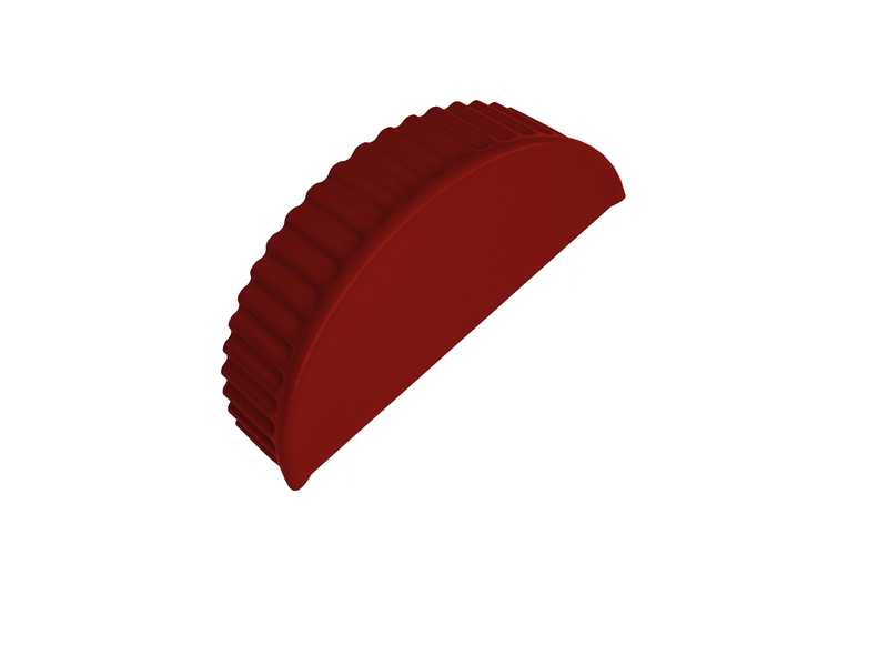Торцевая заглушка полукруглого конька не имеет особенностей в своей установке: достаточно просто надеть её на конёк и всё.